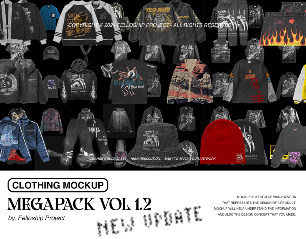 Step into a world of endless creativity with Megapack Vol 1.2 [update version], the ultimate collection of mockup items designed to elevate your projects to the next level. This exceptional bundle offers a staggering 70+ new items, featuring a captivating blend of front and back mockups meticulously crafted to impress.