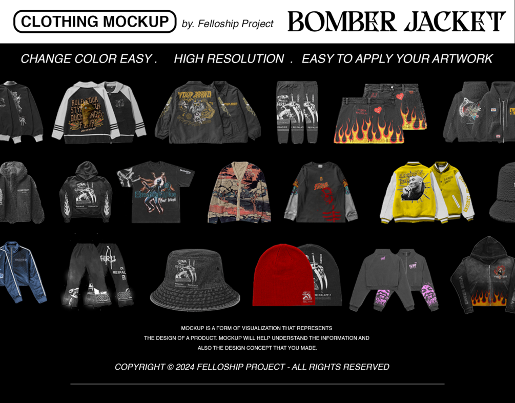 Each mockup boasts a generous resolution of 4000x4000 pixels, ensuring stunning clarity and detail in every design. What sets this Megapack apart is its versatility – colors can be effortlessly changed to suit your vision, allowing for seamless customization.