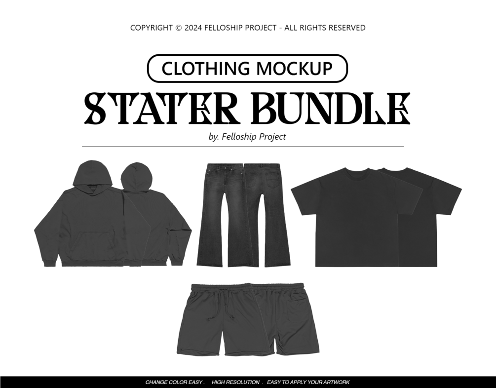 Each mockup boasts a generous resolution of 4000x4000 pixels, ensuring stunning clarity and detail in every design. What sets this Megapack apart is its versatility – colors can be effortlessly changed to suit your vision, allowing for seamless customization.